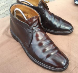 オールデン・コードバン・チャッカブーツのお手入れです。