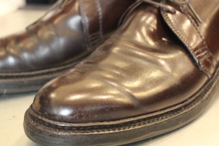カカト周りやつま先の擦り傷もコードバンだからこそ目立たなくする事が出来ます。