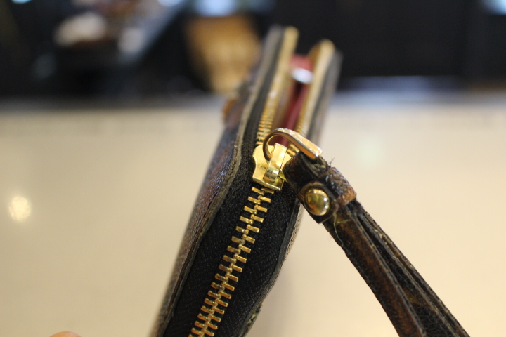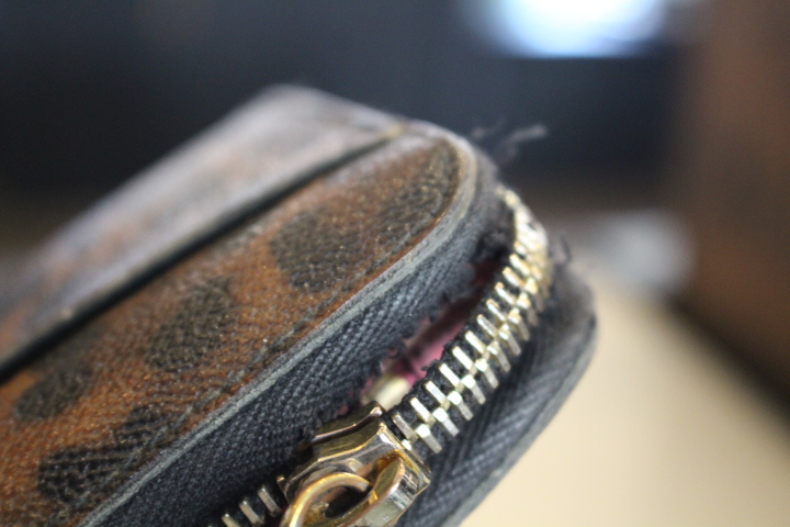 今回のお財布もコーナーの付近の開閉がスムーズに行かず、拝見するとファスナーテープが破れていました。