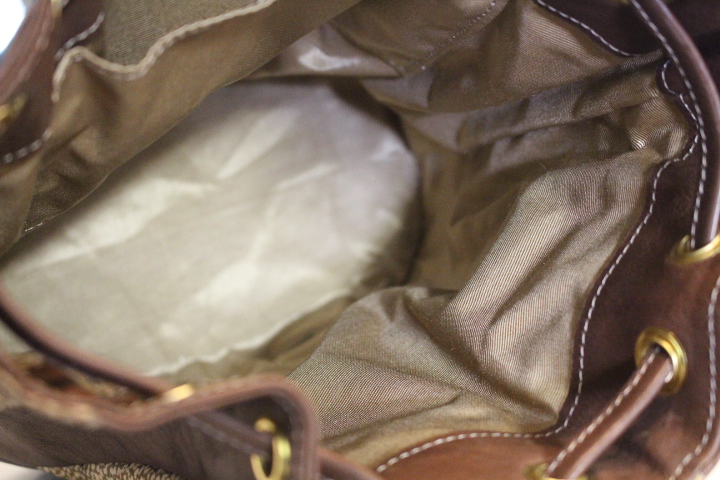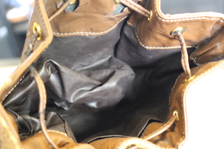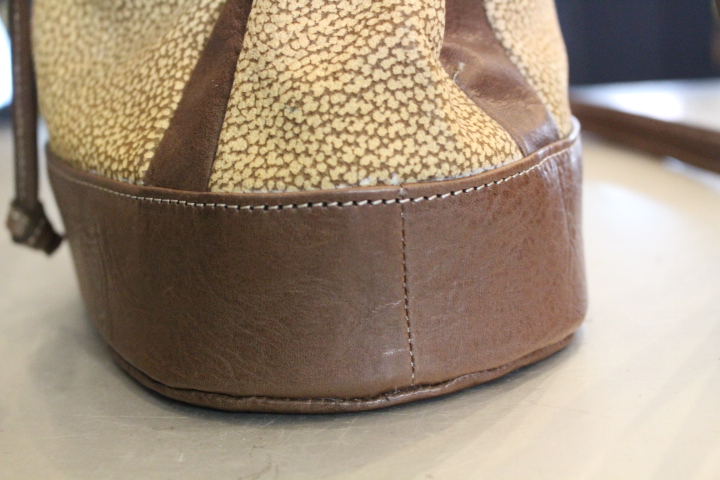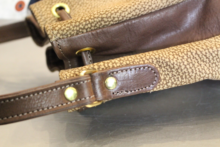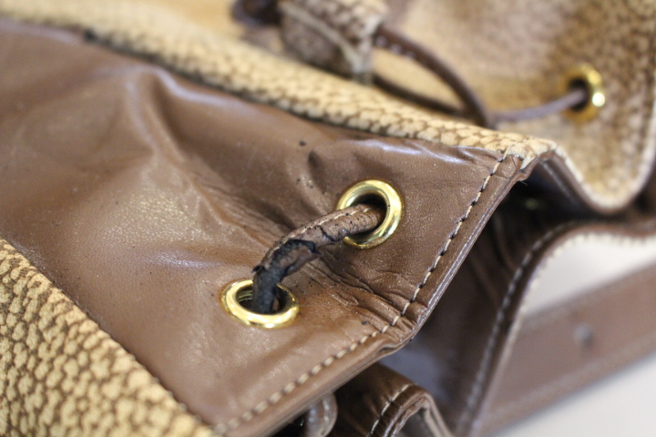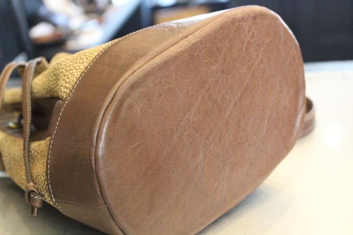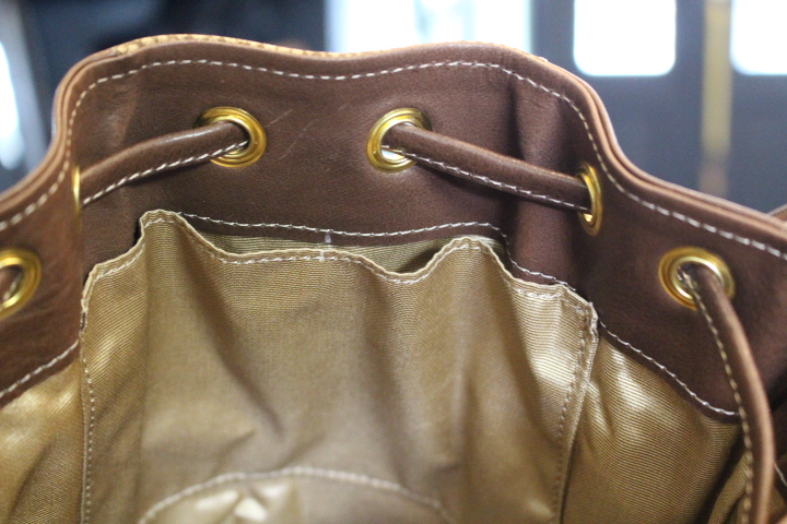 バッグの口を絞る紐も本革で作り替え、お客様希望で修理前に比べ約20cm長くしております。
