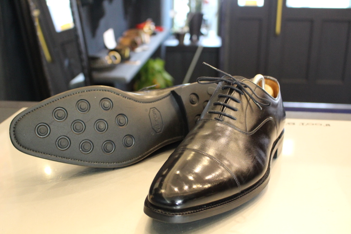 ビジネスシューズのレザーソールの半カラス仕上げも出来ます。