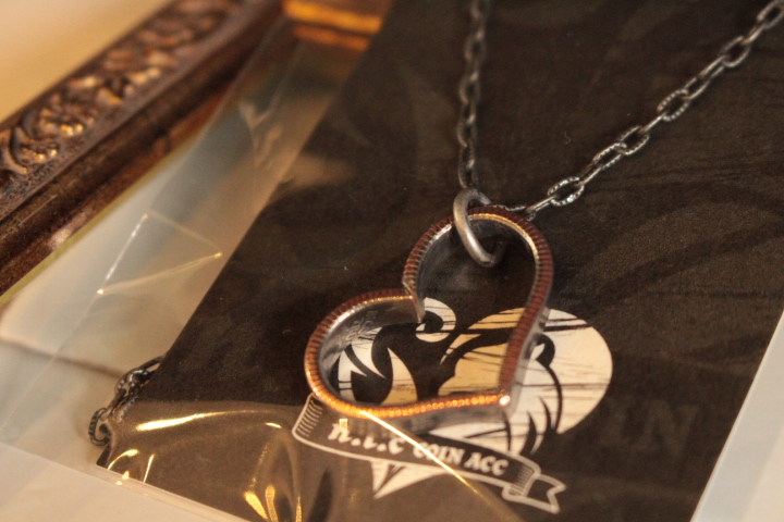 日本では、法律により「日本の流通貨を加工すること」が禁止されており、硬貨を加工するアクセサリー自体に馴染みがない人が多いと思います。しかし、アメリカを始めとする様々な国ではそういった規制がなく、今でも定番のアクセサリーとして加工されております。
