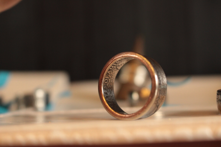 古くは西部開拓時代、ネイティブアメリカンが銀貨を溶かしてジュエリーを製作したことが始まりとされており、その後1960年代にヒッピーたちがアートとしてコインの加工を行ない、コインリングを始めとするコインジュエリーが広まりました。
