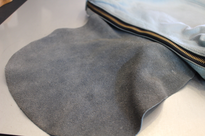 ファスナーは交換の際に、黒色に染め替えることを前提に黒いテープに変更されておりました。