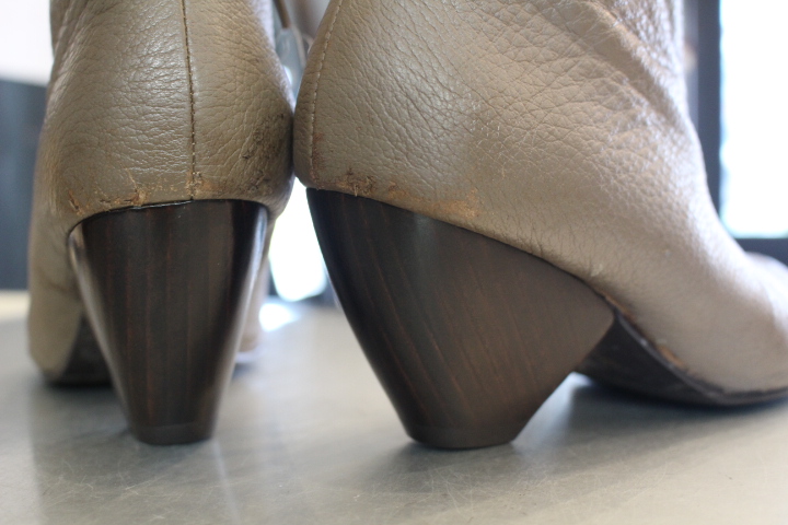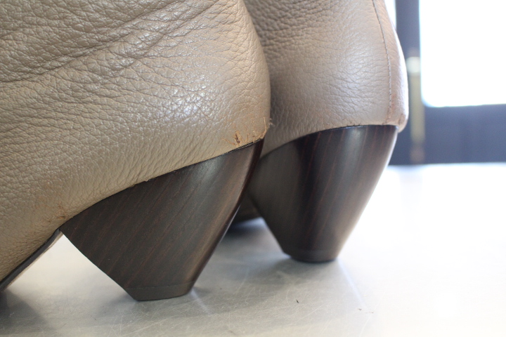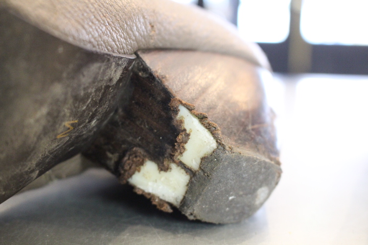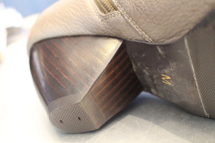 革が残っていると接着する事も出来ますし、ひどい場合はヒール全体を巻替える事が可能です!