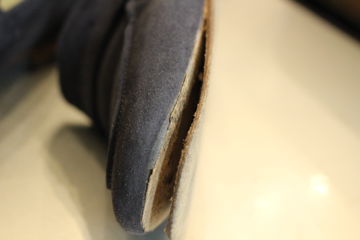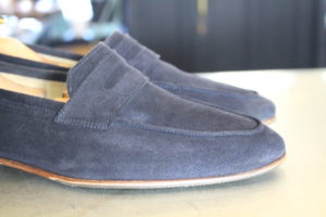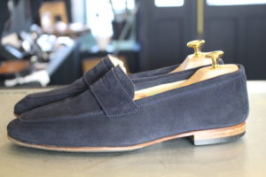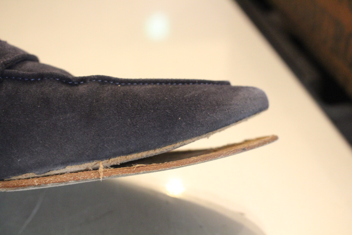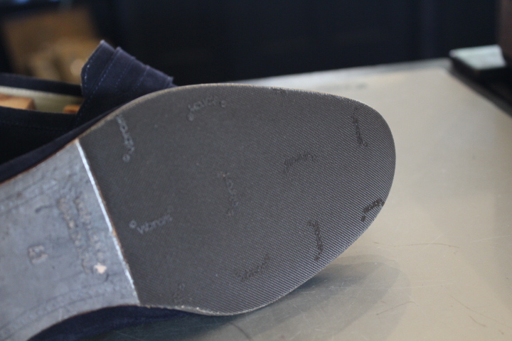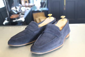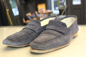 オン・オフ使用出来るスエードのローファーも靴底の剥がれで御来店。