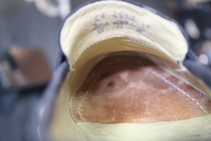 縫ったステッチは歩行時に擦り切れない様に、ハーフラバーソールで保護済。