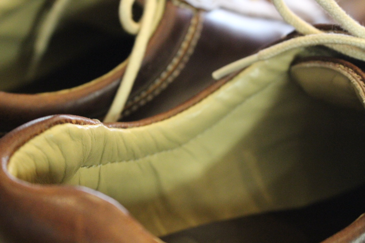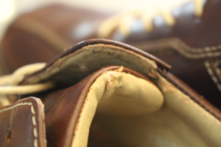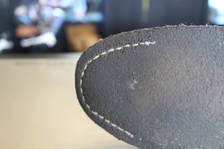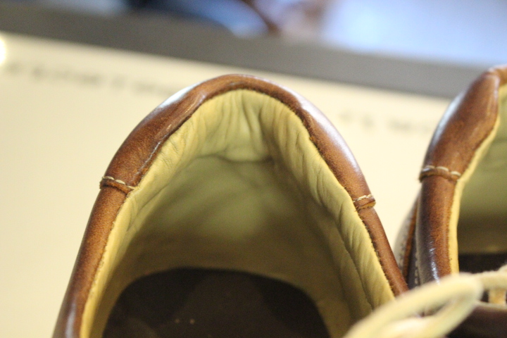 タンの部分の袋縫いは出来ませんので本革を張り合わせて縫いました。