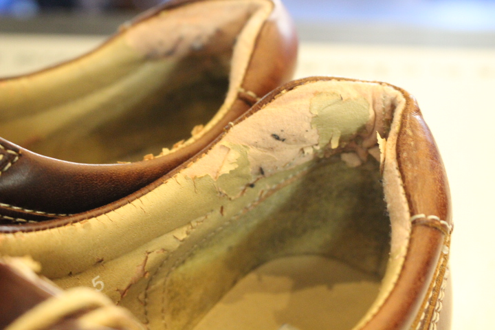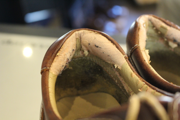 カウンターライニングの部分だけであればよいのですが、靴の内側全てとなると完成した靴の状態からの修理は不可能です。