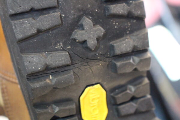 月日と共に硬化が進みソールにひびが入っているのが分かりますね。