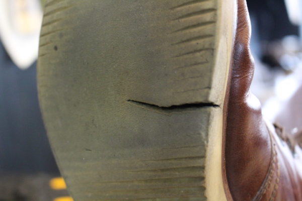 このまま履き続ければ、屈曲するたびに広がっていく為早めの修理がおススメ!
