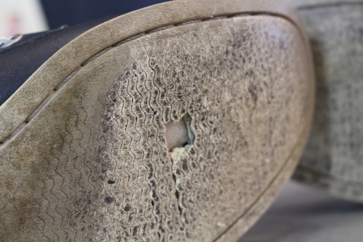 このまま履く事も出来ますがソールが割れている為、水気がある部分を歩けば雨が靴の中に浸み込んで行きます。