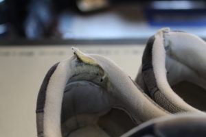 履いている時は見えませんが、脱ぐとみられるカウンターライニングの破れ・・・