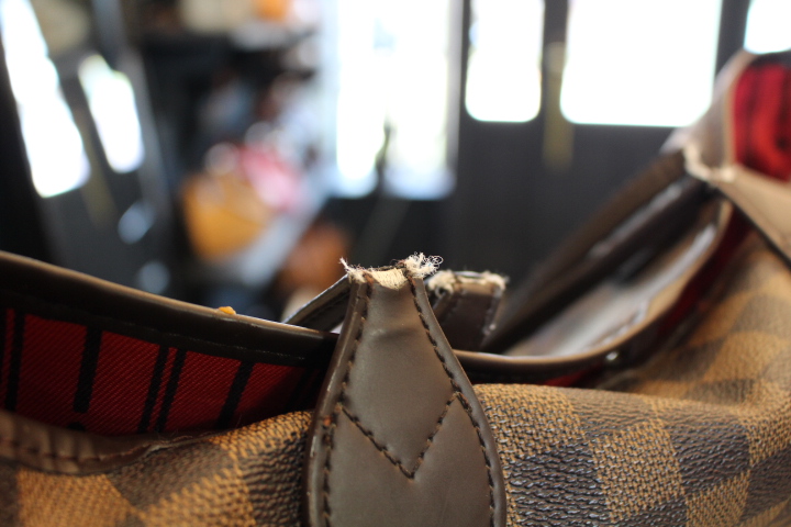 バッグのハンドルに合皮を使用していると、可動部分に負担が掛かり裂けたり・ちぎれかかったりと何かしらダメージが出てきます。