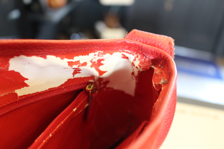 久しぶりに使っていないバッグを見ると・・・内張の劣化・・・