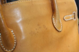 バッグに付いていたシミは同色染で綺麗に消すことが可能。