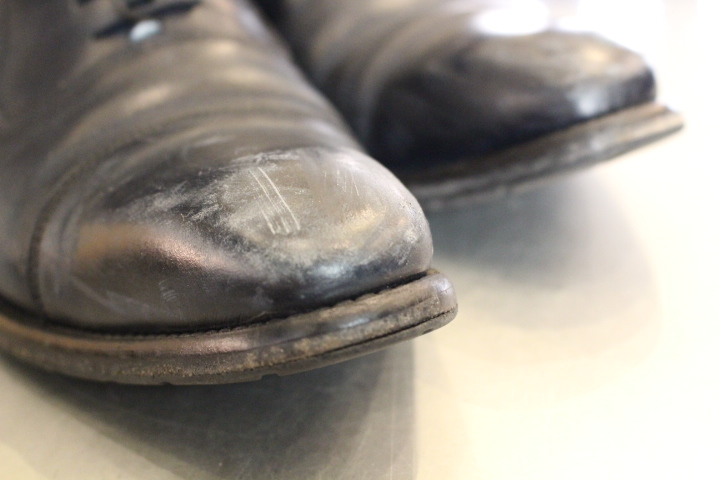アッパーの色抜けもポリッシュ(磨き)を行えば、革が柔らかくなり履きやすく。