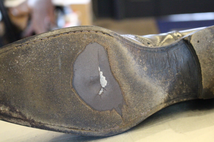 部分的な劣化も見られ、今回はオールソール(靴底交換)致します。