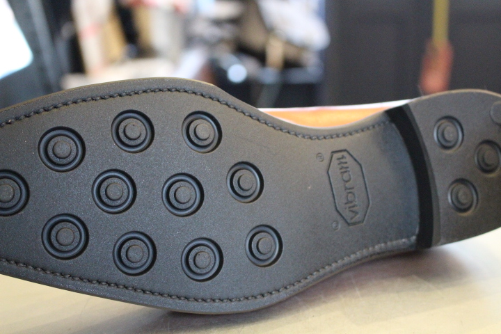 今回はお仕事の都合上、耐久性の強いラバー素材のVibarmでオールソール(靴底交換)致しました。