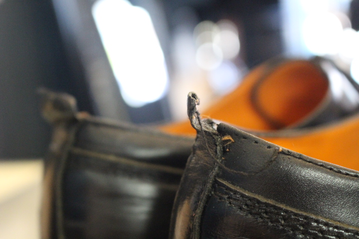 修理方法も色々ございますが、今回はライニング修理もありましたのでカカトの修理費用を抑えた方法で修理致しました。