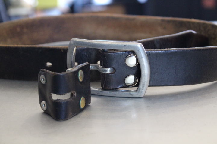 思い出あるこちらのベルトを、お客様と打ち合わせを行いご希望の穴が使える様にカット致します。