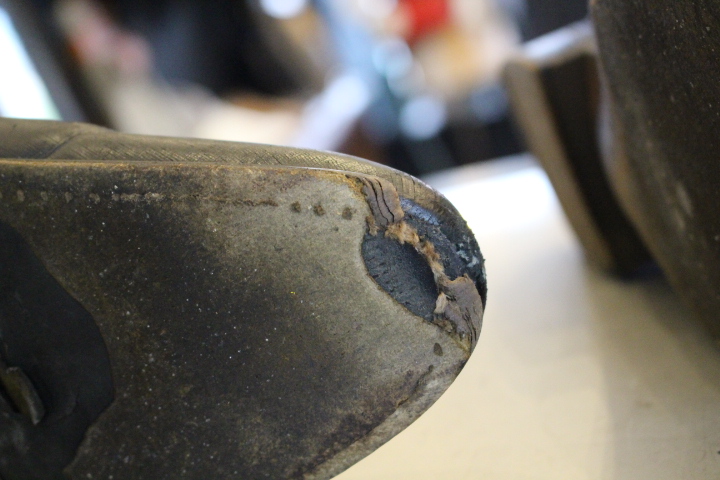 今回はまだ修理可能な状態ですので、オールソール(靴底交換)を行います。