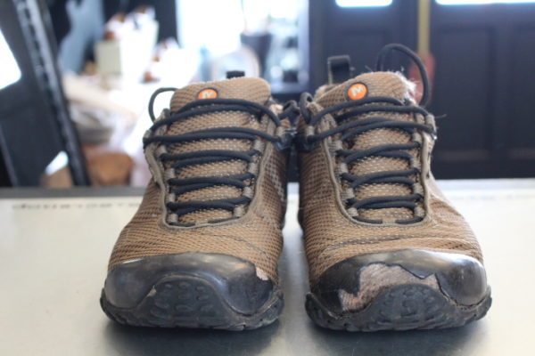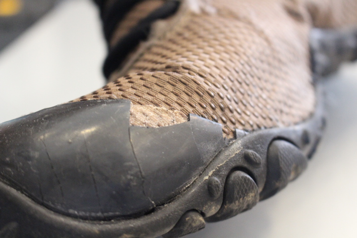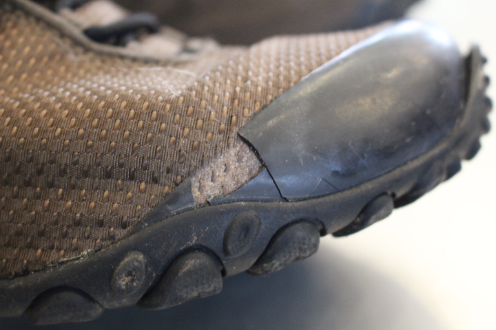 メレルのカメレオンですが、つま先のラバー部分が劣化してご来店。