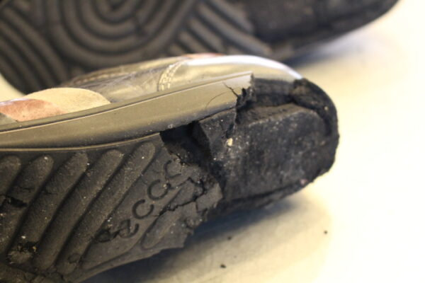 カカト部分のソールが崩れているのが分かりますでしょうか!?