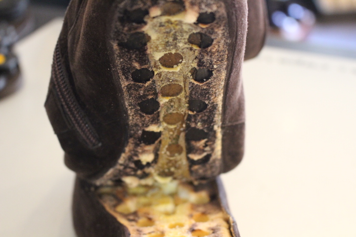 こちらのブーツは一見何てこと無いように見えますが、実はある部分がとても劣化しておりました。