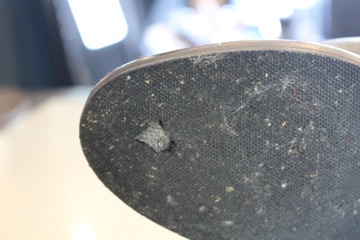 硬化・劣化したソールも全て削り落とし新しいソールを取付。