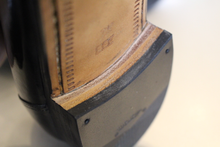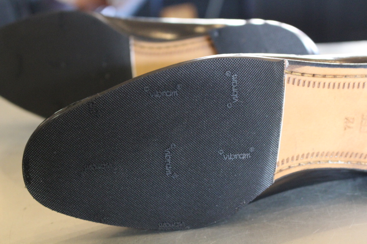 革でヒールベースを作り、トップリフトはVibramで仕上げました。