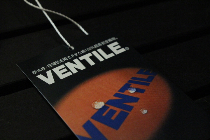 VENTILE(ベンタイル)…英国空軍パイロットの耐水服にも使用されたミルスペック素材です。極限まで糸を打ち込む事で、無加工ながらも非常に高い撥水性を持ちます。