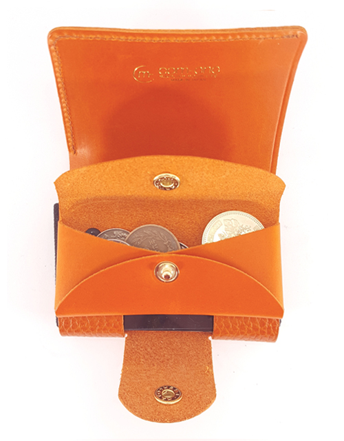 表判にはイタリアのトスカーナ地方で作られているタンニンなめし革に型押ししたドラーロという銘柄の革を使用、内作りにも同じタンナーのブッテーロを使っています