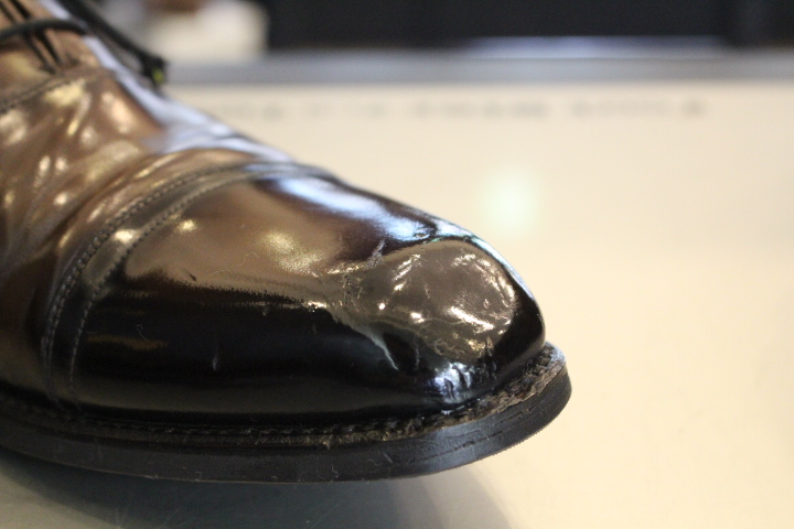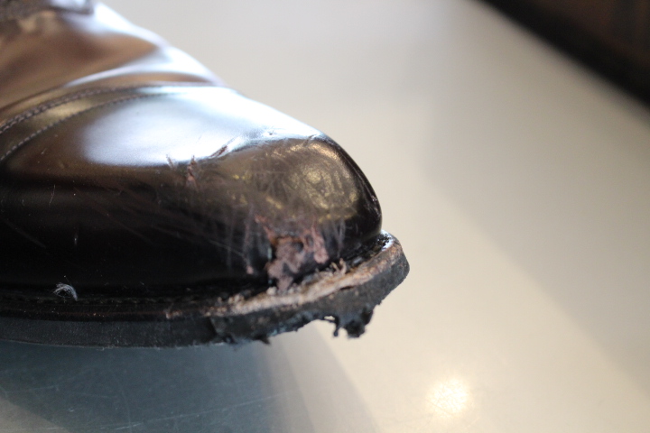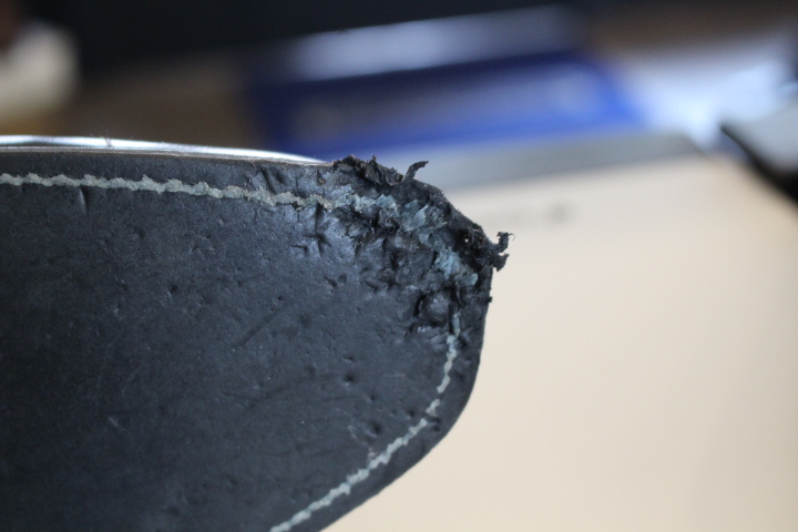 捲れた革は接着して磨き直しました!