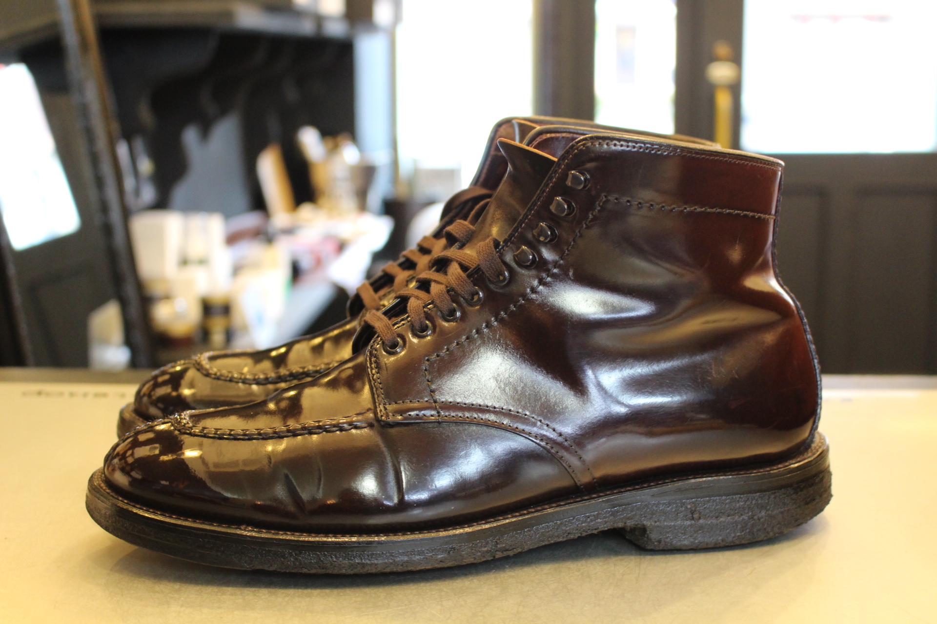 上の写真は靴を磨いた状態ですが、履き続ければ下の写真の様になります。