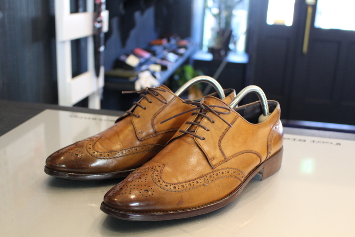 カカトもヒールベースからの交換で、コバはブラウンに仕上げております。