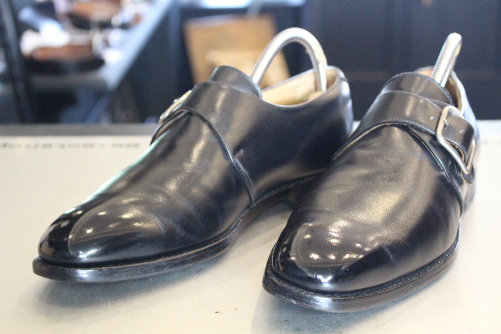 つま先に傷がついたビジネスシューズもこの通り。