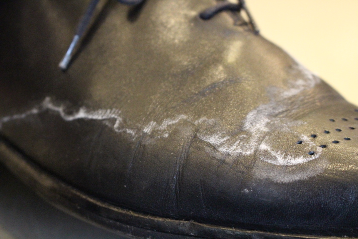 実はこの白い模様は靴の中でかいた汗による塩分です。