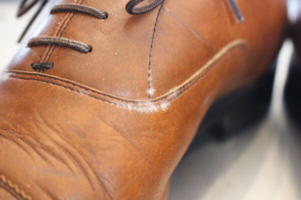 雨に濡れ、レザーソールから雨が染み込み、靴の中で乾燥する際にカビが出てくる為要注意!