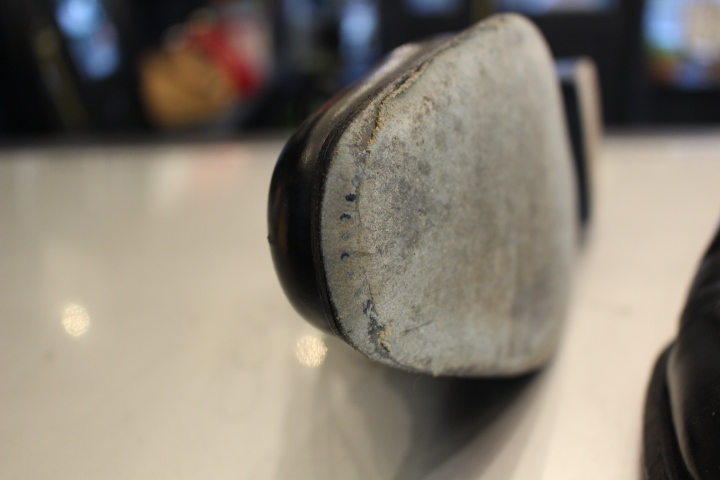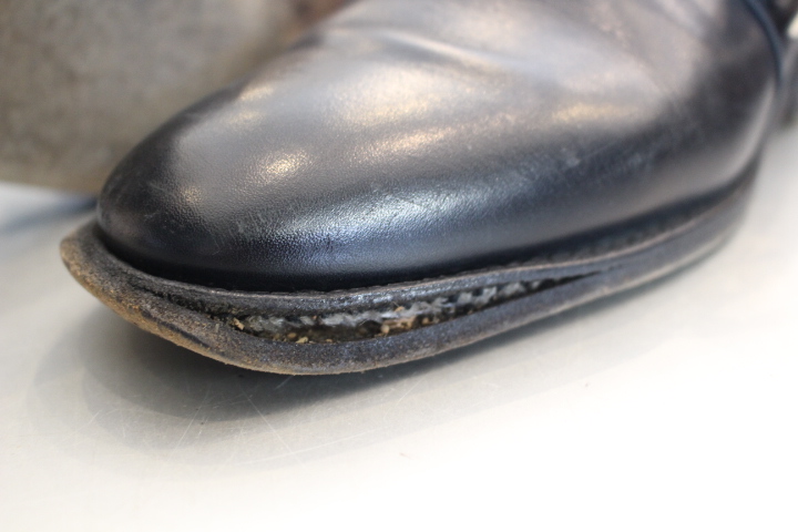 グッドイヤー製法でつま先がウェルトギリギリの状態。