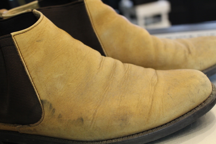 カッサカサに乾燥したこちらのサイドゴアブーツ。