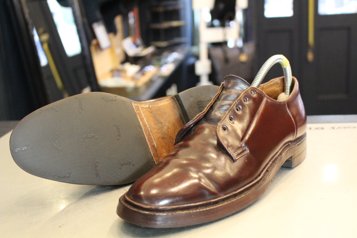 また滑りやすいレザーソールにはハーフラバーソールを取付。