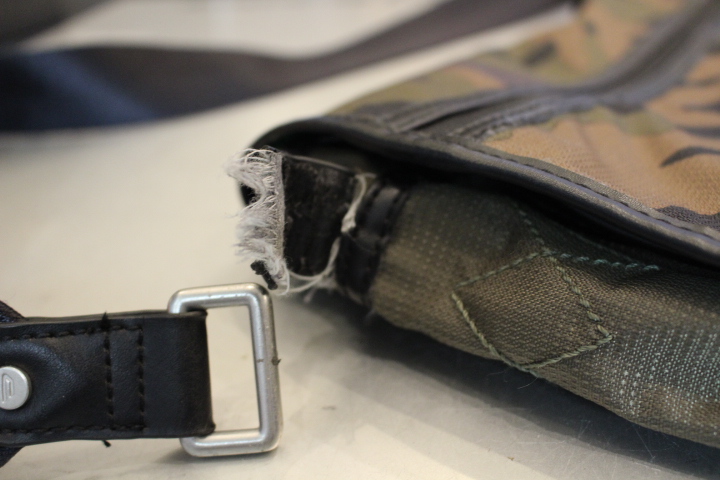 ショルダーベルトとバッグの本体を繋ぐ大事な部分が劣化して裂けてしまいました。