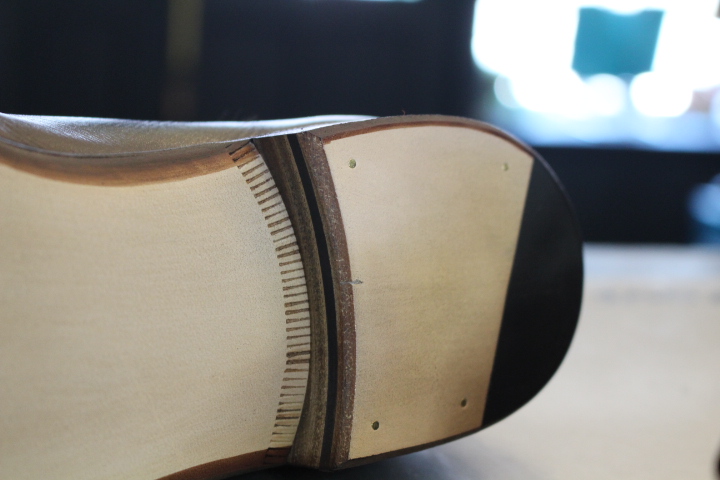 ソールは勿論レザーでステッチもヒドゥンチャネルで見えない仕様に。