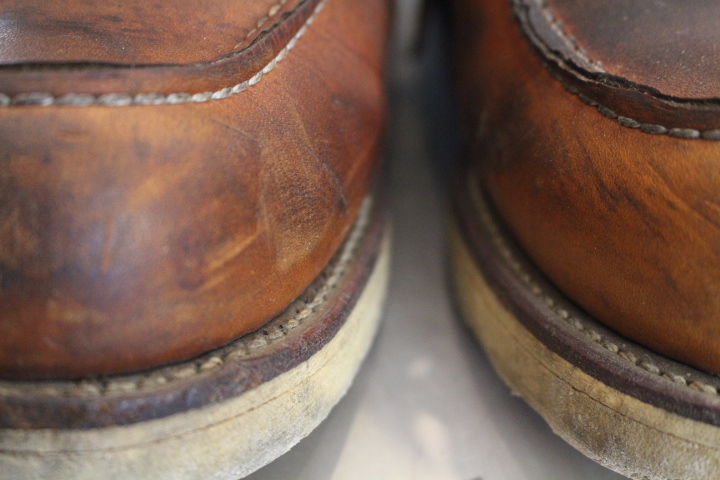 いい感じの経年変化ですが、アッパーはベタつきのあるオイルドレザー状態・・・