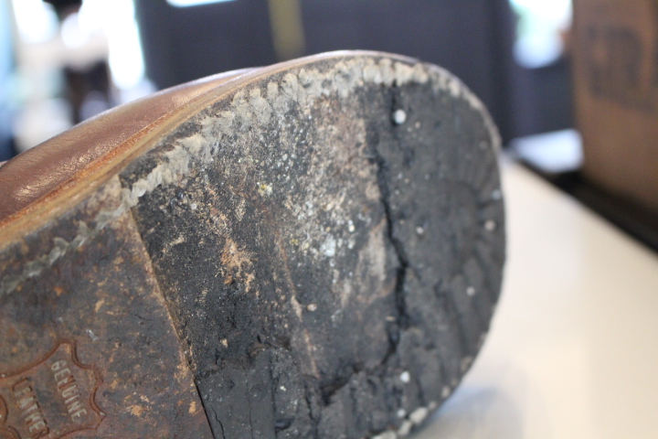 ヒールも半分程度減っており、ミッドソールのダメージも含め今回はオールソール致しました。