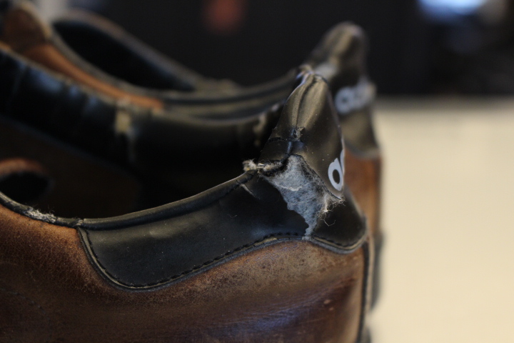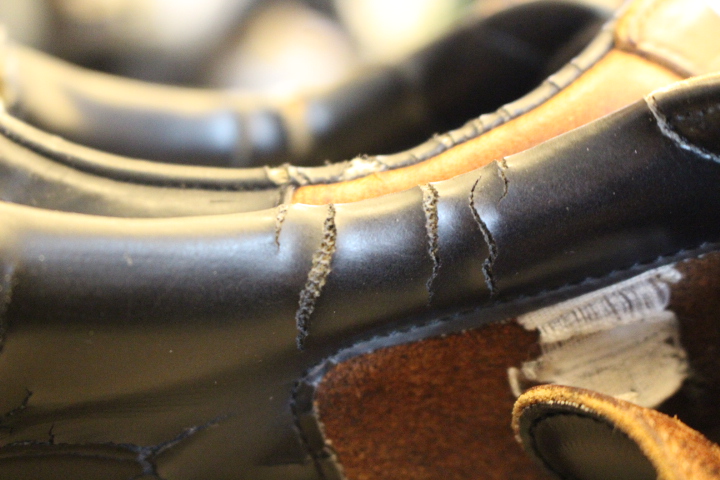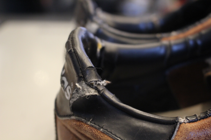 履き口のカウンターライニングがカチカチになってひび割れておりました。