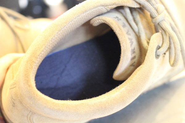 インソールが分厚く、アウトソールにはまり込む様な設計の為、純正インソールが使えずサイズが小さくなっても良い方にはソールの交換が可能。