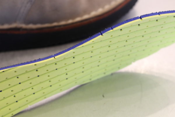 このままではインソールが無くミッドソールが硬いため、当店おススメの”ぺダック”を使用します。