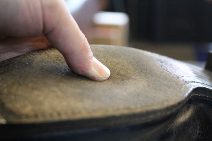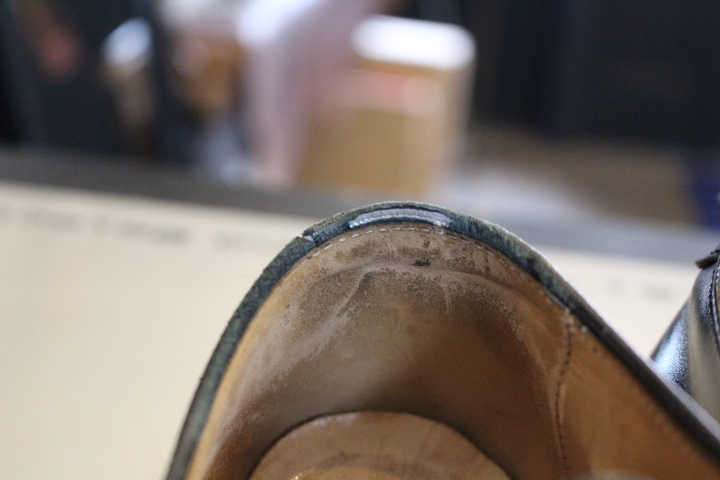 同時にハーフラバーソールでの補強がおススメですが、今回はお客様のご希望でオールソール(靴底交換)致します。